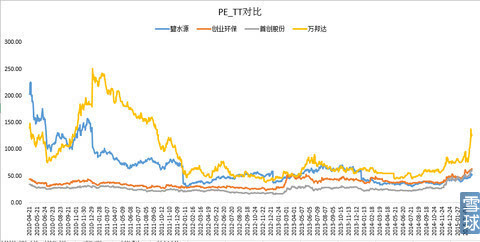 碧水源估值在四只環(huán)保股中間暫時(shí)是最低的,從歷史數(shù)據(jù)看,之前沒(méi)爆發(fā)前確實(shí)是低點(diǎn),而爆發(fā)后仍處于平均值估值(PE=66)的平均水平之下,當(dāng)下PE_TTM為52.74。
