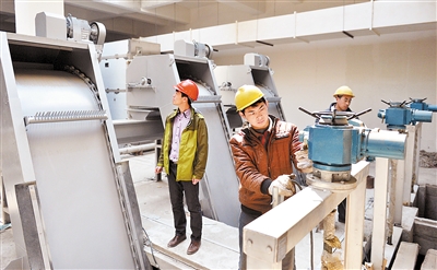 4月7日,在石家莊正定新區(qū),工人正在安裝污水處理設備。這是全省首家地下式污水處理廠,日處理能力可達10萬噸。該處理廠采用國內(nèi)先進的膜生物反應器污水處理技術深度處理污水,出水水質(zhì)優(yōu)于國家一級A標準,部分指標可達地表水四類水質(zhì)要求。目前,該污水處理廠正在進行設備安裝,預計今年6月通水運行。 ?xml:namespace>