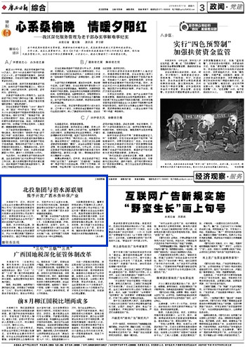 近日,深交所上市企業(yè)北京碧水源科技股份有限公司與廣西北部灣投資集團(tuán)有限公司旗下企業(yè)合資成立的廣西北部灣水務(wù)投資有限公司在南寧成立,首期注冊資本金10億元,拉開了京桂兩地名企合作開發(fā)廣西水務(wù)環(huán)保產(chǎn)業(yè)的大幕。