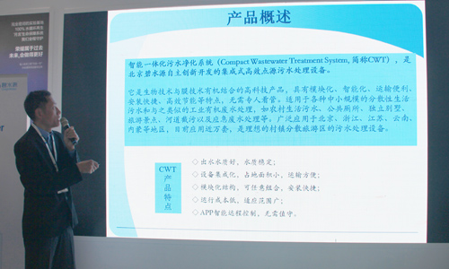 碧水源研發(fā)中心副主任、高級(jí)工程師劉德祥,研發(fā)中心首席專家、教授級(jí)高工李鎖定,研發(fā)中心超微濾膜研發(fā)室主任代攀,研發(fā)中心工藝研發(fā)室主任李天玉,研發(fā)中心產(chǎn)品開發(fā)部經(jīng)理劉明軒等參加了此次發(fā)布會(huì),其中,李鎖定教授更是為展會(huì)現(xiàn)場的觀眾們詳細(xì)解說了碧水源重點(diǎn)發(fā)布的第二代智能一體化污水凈化設(shè)備(CWT)。 CWT是村鎮(zhèn)污水處理的革命性產(chǎn)品,是針對鄉(xiāng)村污水治理難點(diǎn)的創(chuàng)新性解決方案。